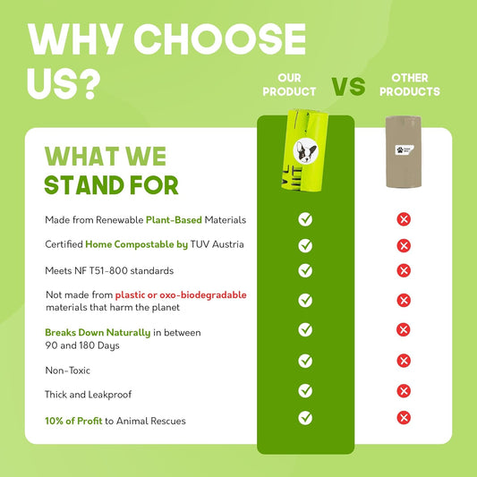 Certified Home Compostable Dog Poop Bags - 240 Pack (16 Rolls) - TUV OK HOME COMPOST Certified - Thick + Leakproof - 10% to Charity - Biodegradable Poop Bags for Dogs and Pet Waste - Doggie Supplies